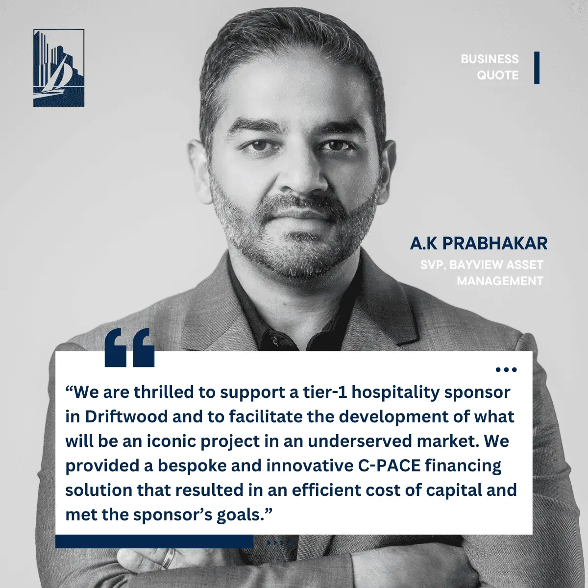 Driftwood Capital’s signature Westin Cocoa Beach Resort & Spa, a $420 million luxury beachfront new development on Florida’s Space Coast, is currently under construction with a planned opening in early 2027. This 502-room resort and spa represents Driftwood’s fourth hospitality project in Brevard County. The project was financed through a $207 million solution, which includes a $137 million C-PACE